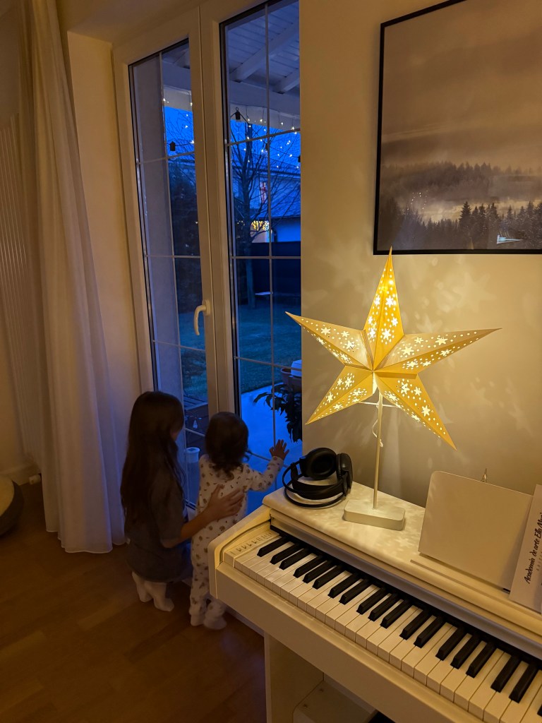 The girls are waiting for the snow, waiting for Santa, and the whole house feels wrapped in excitement but the gentle kind. Not the rushing kind. We’re just spending a peaceful evening at home, the four of us. No stress, no last-minute chaos, just quiet joy.